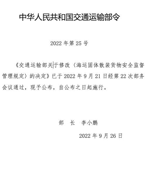 (2019年1月28日交通运输部公布 根据2022年9月26日《交通运输部关于修改〈海运固体散装货物安全监督管理规定〉的决定》修正)